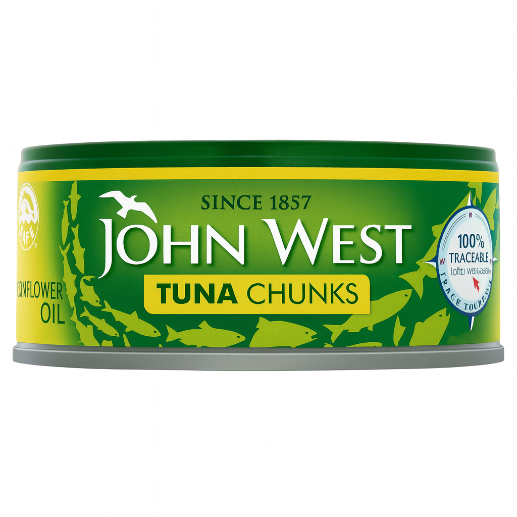 John West Tuna in Oil delivers premium quality tuna chunks packed in rich sunflower oil for a moist, flavourful taste. Perfect for salads, sandwiches, pasta dishes, or as a protein-rich snack, this product offers convenience and consistent quality trusted by families and chefs alike. Each pack contains 12 tins (145g each), ideal for both retail sale and catering use.Contains fish (tuna), may contain traces of other fish, gluten-free, halal-friendly.